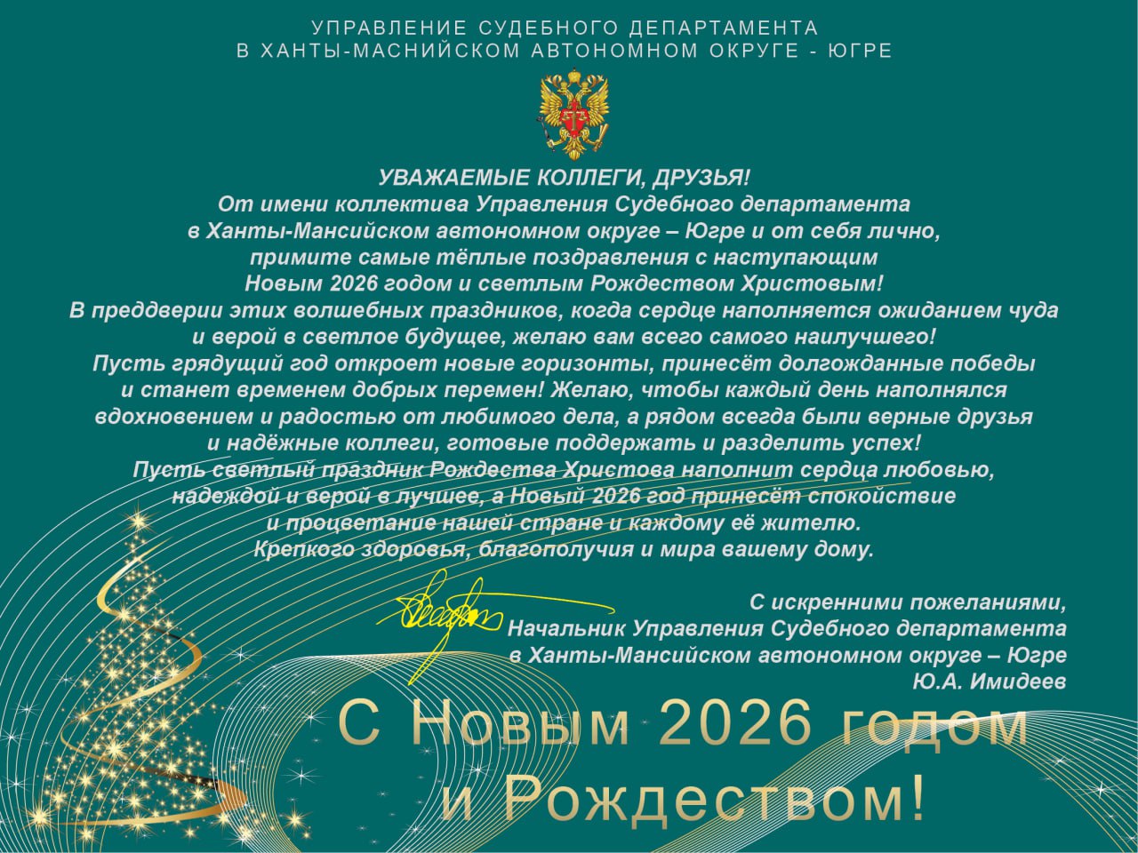 Управление Судебного департамента в Ханты-Мансийском автономном округе - Югре поздравляет с Новым 2026 годом! ![]() |